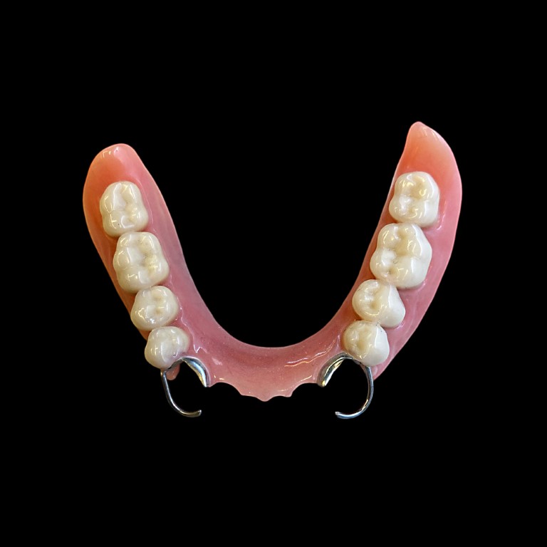 - Prótesis parcial acrílica: Esta prótesis se utiliza cuando el paciente aún conserva algunos dientes naturales en la boca. La prótesis parcial acrílica cuenta con una base de resina que se ajusta a las encías, y puede incorporar ganchos metálicos o acrílico que se fijan a los dientes naturales para proporcionar estabilidad.